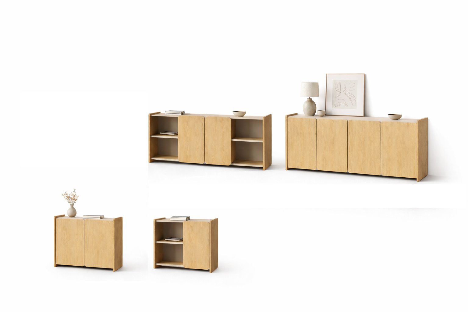 Η σειρά περιλαμβάνει διαφορετικές διαστάσεις και συνδυασμούς ανοιχτών ραφιών και κλειστών αποθηκευτικών χώρων, προσφέροντας ευελιξία και οργάνωση σύμφωνα με τις ανάγκες του χώρου.