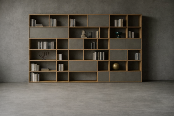 Ένα σύγχρονο σύστημα βιβλιοθήκης που συνδυάζει καθαρές γραμμές, φυσικά υλικά και απόλυτη ευελιξία σύνθεσης.