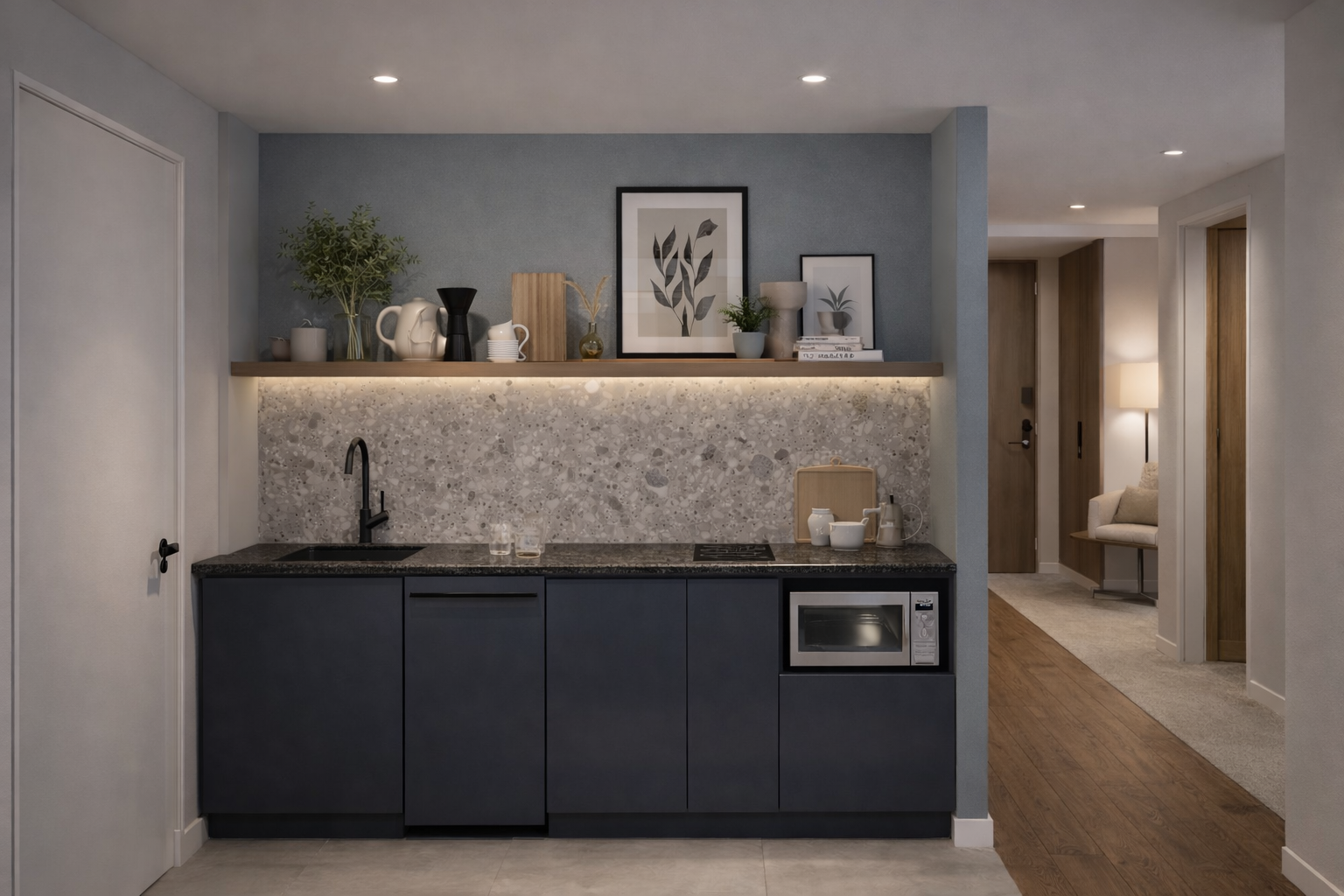 Custom-made λύσεις κουζίνες εσωτερικού χώρου για ξενοδοχεία, που συνδυάζουν αρμονικά το σύγχρονο design με τη μέγιστη λειτουργικότητα.